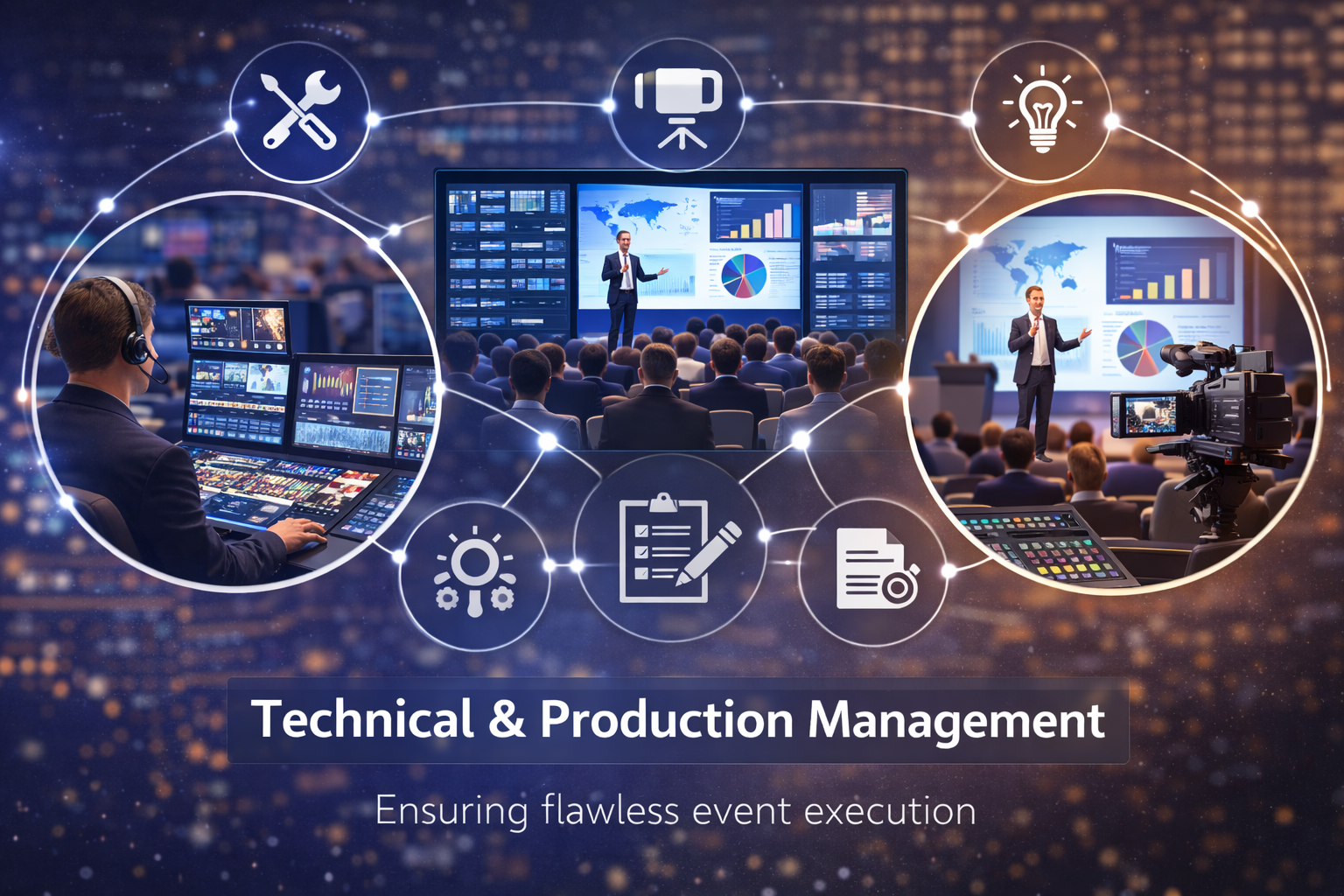 ● Audio & visual setup: professional sound, microphones, LED screens
